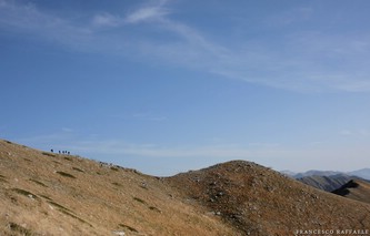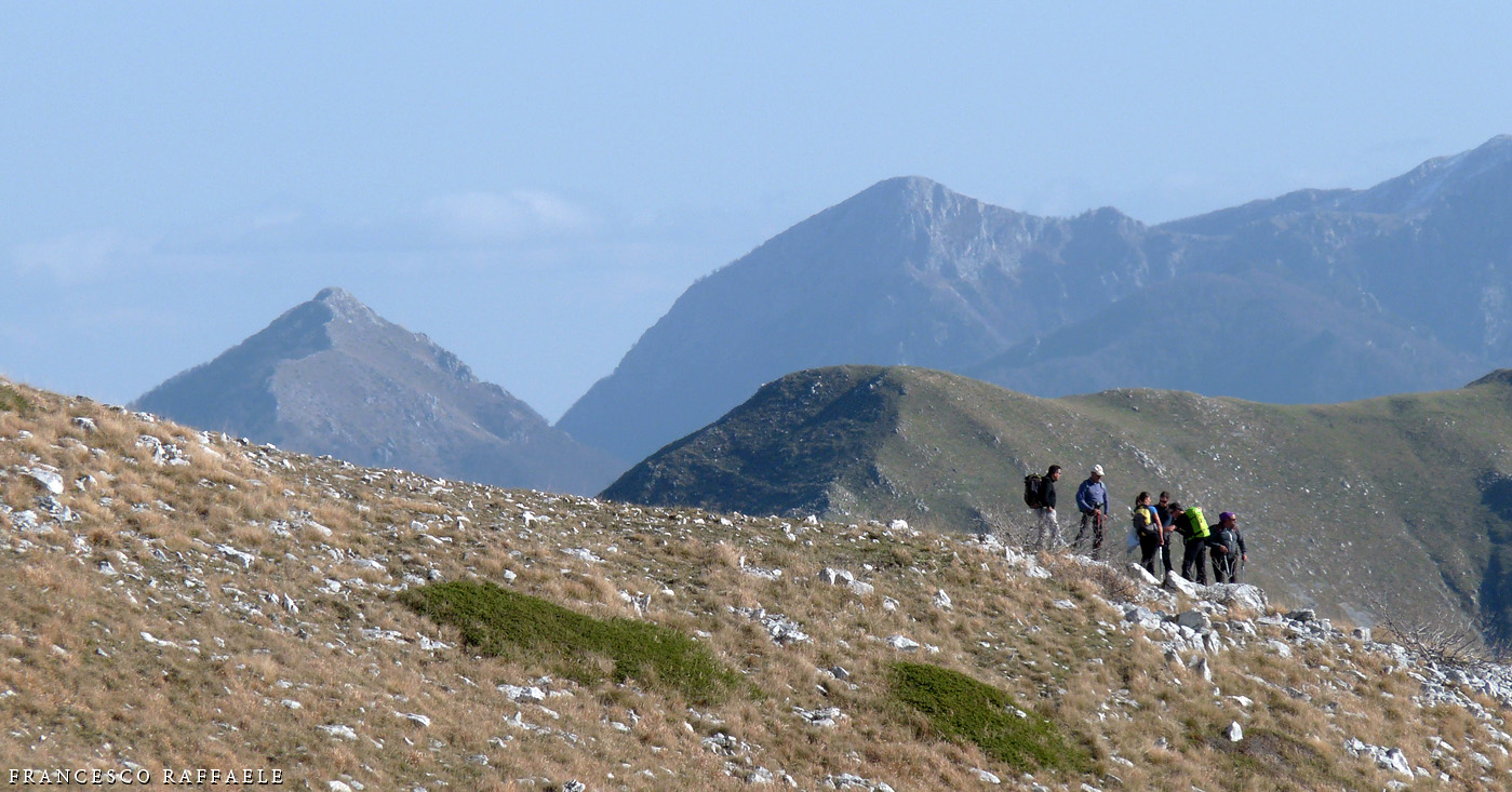 In primo piano escursionisti sulla cresta Montagnone - Serrone (Clicca per vedere la foto a colori)