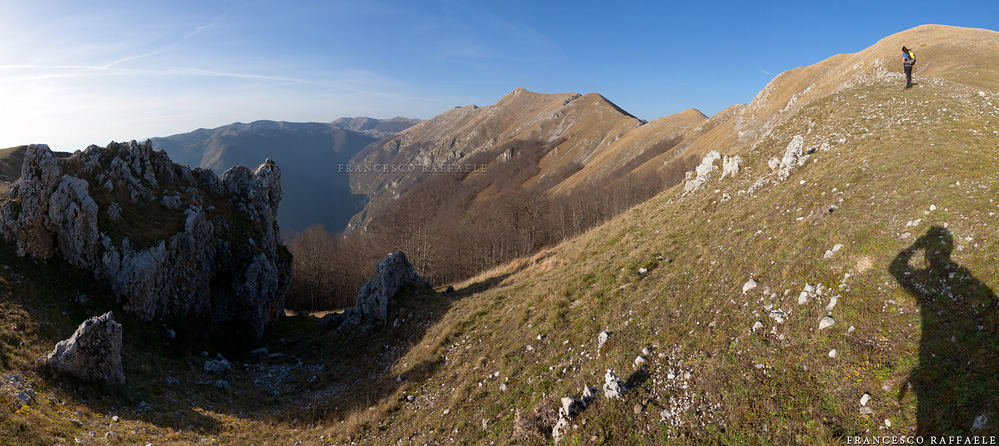 La Cresta di Picco La Rocca, Mt. La Rocca, Mt. della Strega, Mt. Pietroso, Valico di Monte Tranquillo ... in ombra la Valle Lattara tra Mt. Tranquillo, Serra del Re e Mt. Trani