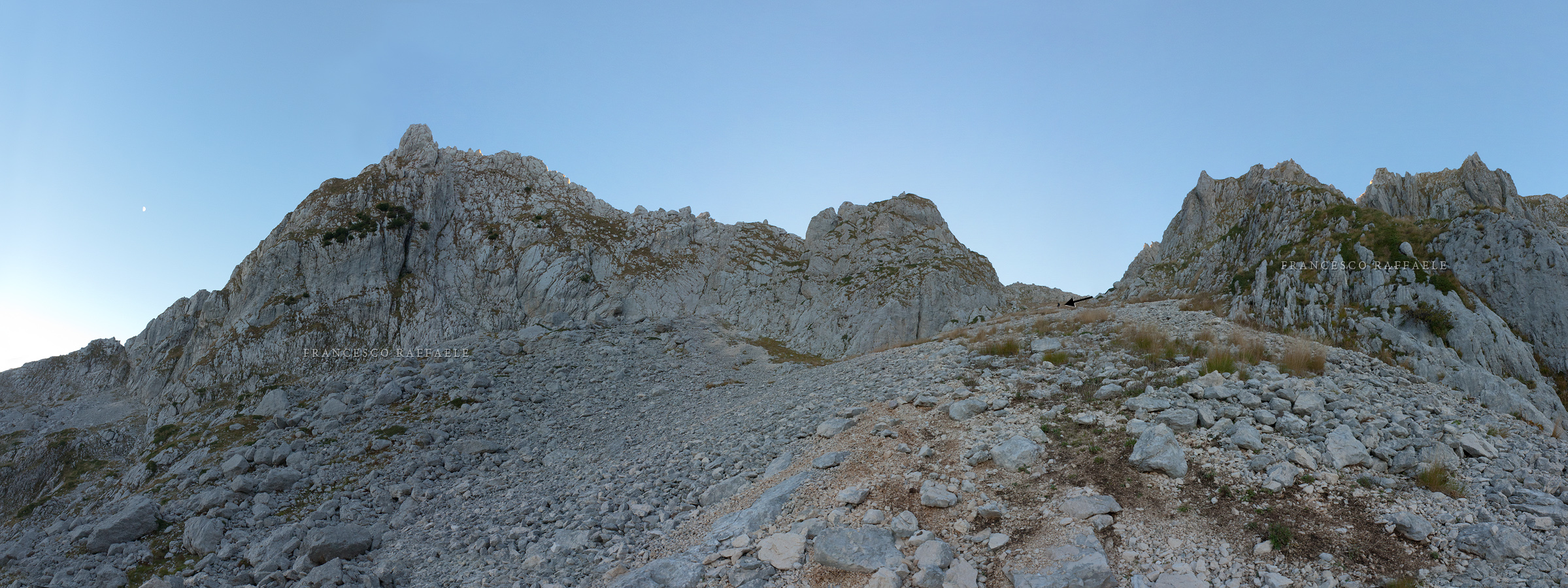 Panorama (250°) dalla base dell'Anticima S (centro) del Petroso (sinistra).
