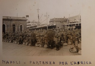 PRIMA DI TOTO' - Anche in Africa non mancavano occasioni per scherzi o vicende comiche: non ricordo come andasse a finire quando, invitato ad una tavolata in una bettola di Tripoli, pensando fosse "tutto pagato", si riempì la pancia per ore, restando infine seduto, solo con un compagno, mentre gli altri soldati pian piano si erano dileguati con l'intento di lasciare agli ultimi l'onere del salatissimo conto... Di certo anche lui finì per squagliarsela, perché alla fine del racconto di questo episodio ripeteva sempre che quei tavernieri tripolitani "m'stanno ancora aspettann".