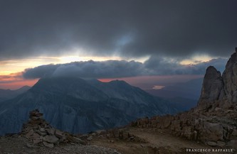 - Fotografie: stavolta ho rinunciato alla reflex, andando con una più leggera compatta/superzoom da 10Mp che ho tenuto sempre al collo. In altre situazioni recenti sul GS ho usato soprattutto la reflex, ma qui sarebbe stata ingombrante e -anche viste le nubi- ne ho sentito la mancanza solo al tramonto sulla Sella dei Due Corni e soprattutto sull'Arapietra, dove con una buona FF (prossimo acquisto) avrei immortalato una splendida via Lattea che ci passava sulle nostre teste "fuoriuscendo" dal Corno Grande come se fosse stata spruzzata in cielo dalla montagna! Ma non si può avere tutto, e per adesso va benissimo così.