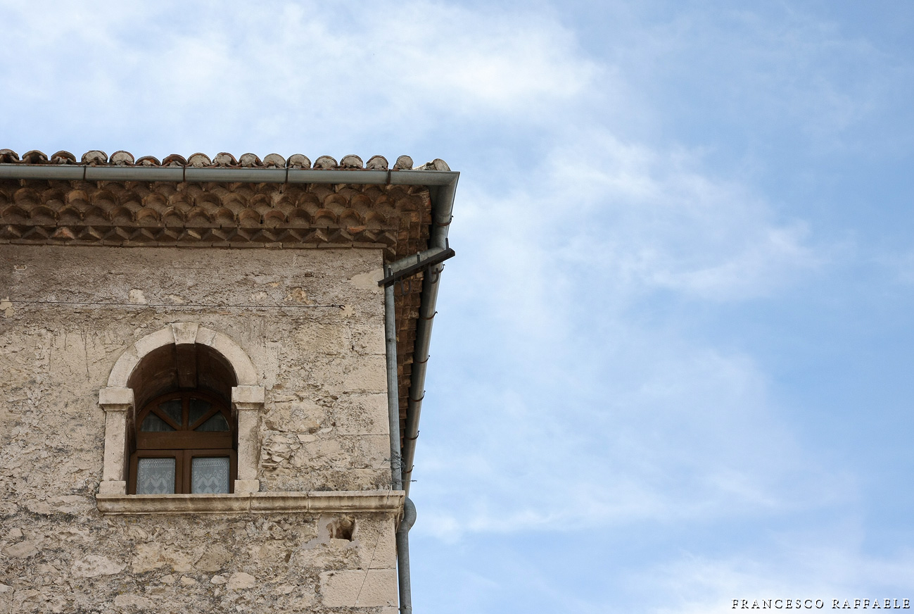 I Tetti di Pescocostanzo e della torre dell'orologio del Municipio, dal Castello sulla sommità del "Pesco"
