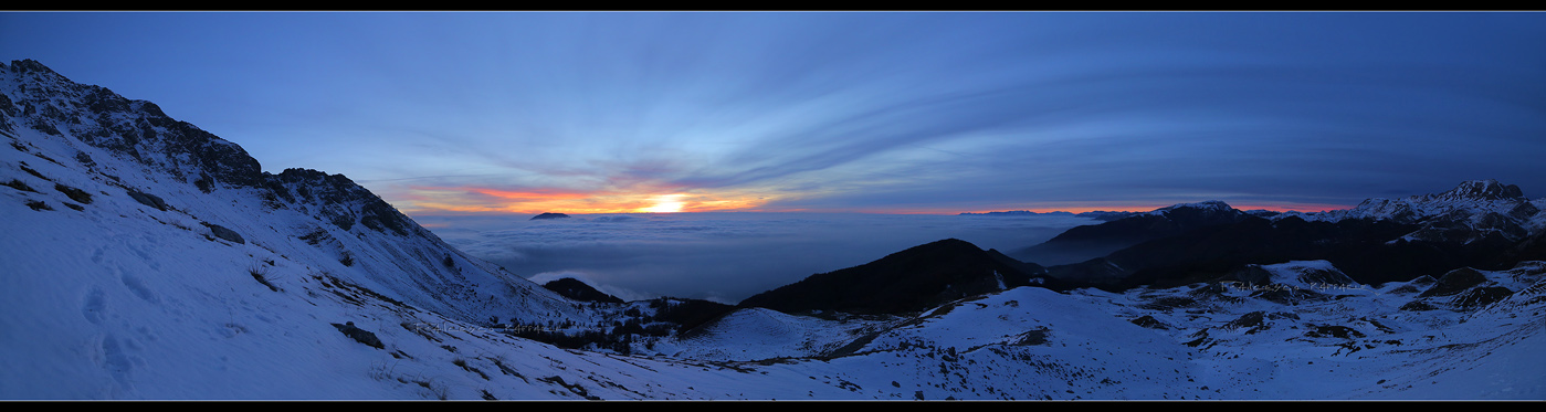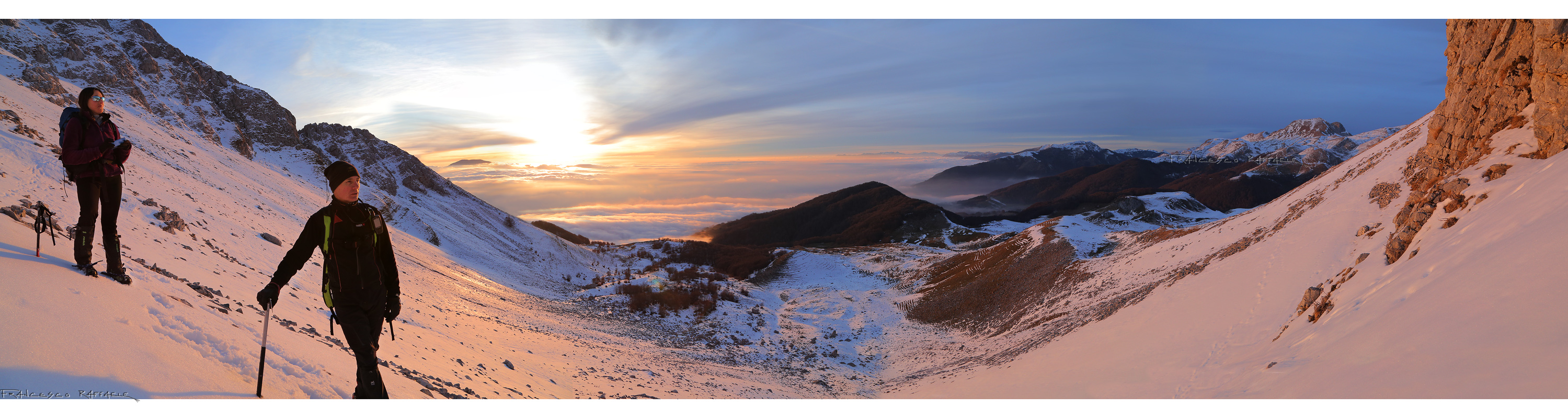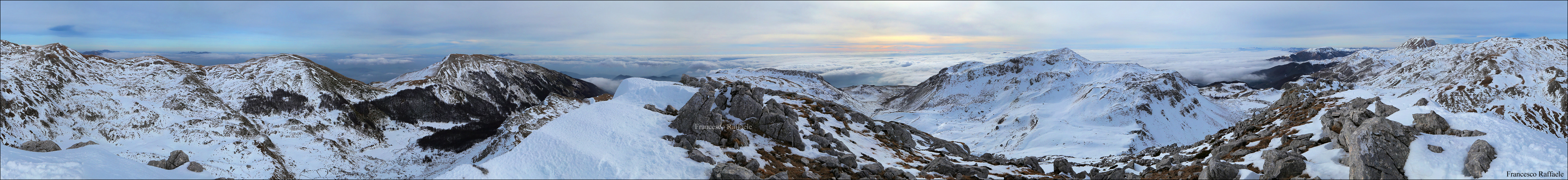 Panorama a 360° dal Cavallo, sulle Mainarde e Meta, quest'inverno con innevamento desolante e preoccupante (clicca)