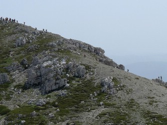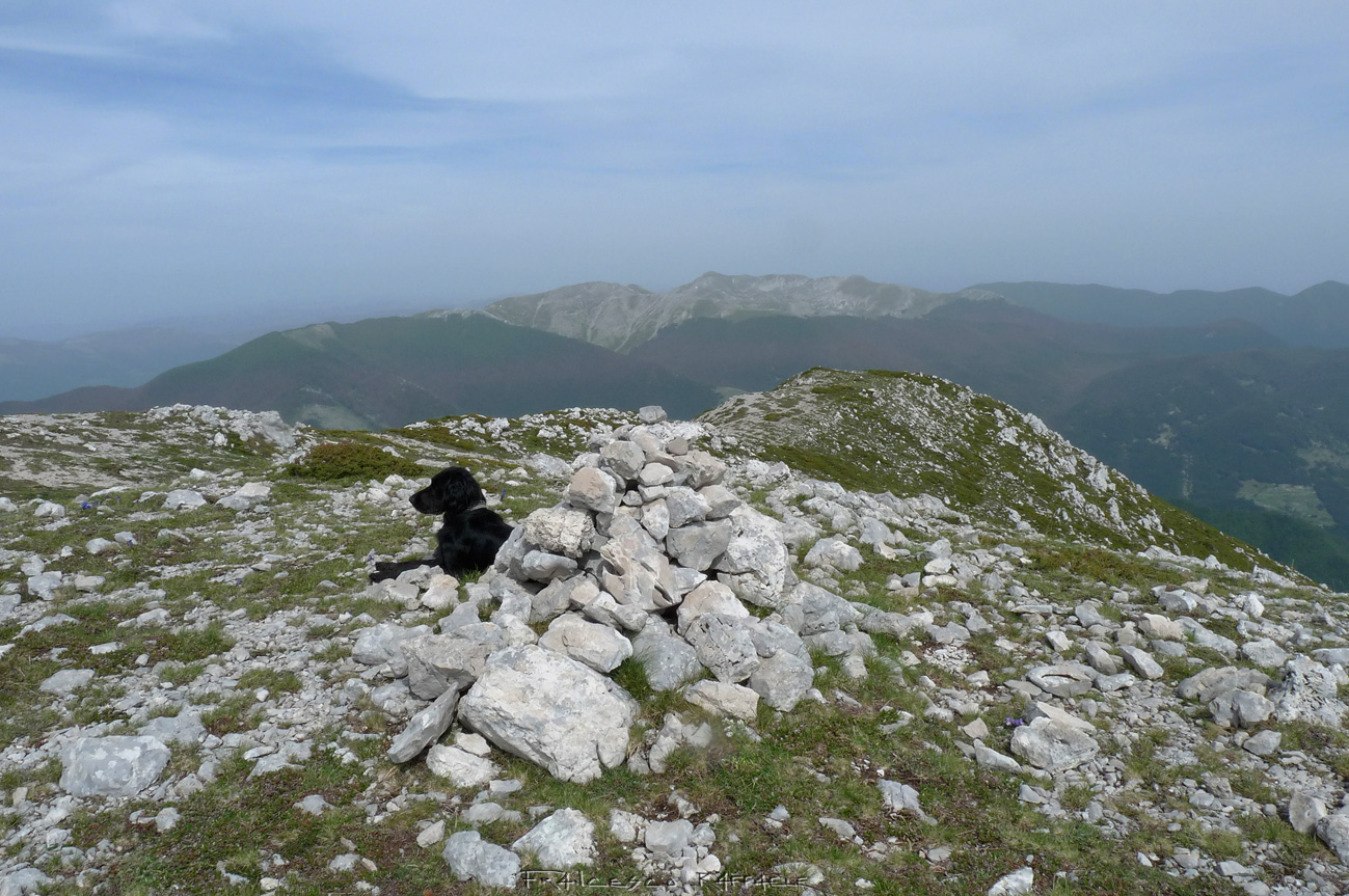 Rischio di perdermi questo bellissimo evento per un contrattempo, ma per fortuna -chiamando Claudio- riusciamo a rimediare: mi perderò le prime tre cime poste attorno a Campocatino. In compenso faccio un veloce giro nella bellissima Alatri, una delle perle della "Ciociaria italica", tra le roccaforti dei popoli Ernici. Dopo una breve sosta a Guarcino, risalgo i tornanti della strada per Campocatino e alle 10:30 mi incammino dal piazzale degli impianti sciistici, in direzione del Mt. Vermicano, per cercare di localizzare il gruppo. Poco dopo li scorgo, sono più di 50 persone, sul Peschio della Cornacchia, la terza cima in programma, quindi mi dirigo verso di loro e li raggiungo sul Peschio delle Ciavole, salutando Claudio. Sul Mt. Crepacuore (1997m, la quota più alta toccata in quest'anello) incontro Massimo Zulli e Mauro Canepuccia, fortissimi escursionisti abruzzesi la cui passione primaria è la Majella, in tutte le stagioni, ma che non disdegnano puntate sul Gran Sasso e in altri gruppi appenninici (vere e proprie imprese sono alcune loro risalite e traversate su Majella e GS, e anche avventurose scialpinistiche). Una volta riuniti tutti sul Crepacuore, si brinda alle "Montagne nel Cuore" di Claudio Cecilia, con un bel magnum (!) di champagne che esce come per incanto dal suo zaino. Non manca un ricordo all'amatissimo e indimenticabile Pino Sabbatini. Poi si prosegue tornando verso il crinale principale (io ripasso per il Peschio delle Ciavole andando dietro a Zulli e Canepuccia, per dare un'occhiata ai ponticelli di roccia sul versante NE) dalla fontana e quindi dalle Sella del Pozzotello e via verso l'Ortara, Fanfilli e la Monna. Un piacere conoscere tutte queste cime, raggiungibili individualmente per altri sentieri interessanti dal basso. Di certo, in condizioni invernali, la zona è anche più affascinante e si presta a lunghi anelli con ciaspole e sci. Alla fine del lungo percorso del ritorno ripasso sul Vermicano(che il gruppo non aveva toccato la mattina) e quindi giù a Campocatino per una lunga sosta a birre e patatine, in attesa che tutti facciano ritorno alla base. Alla fine, per me, 9 cime (7, ma 2 di esse toccate due volte) e c.25Km / c.1600m dislivello, mentre il resto del gruppo ha camminato per c. 27-28Km con 1800-1900m di dislivello, in una delle prime giornate calde...