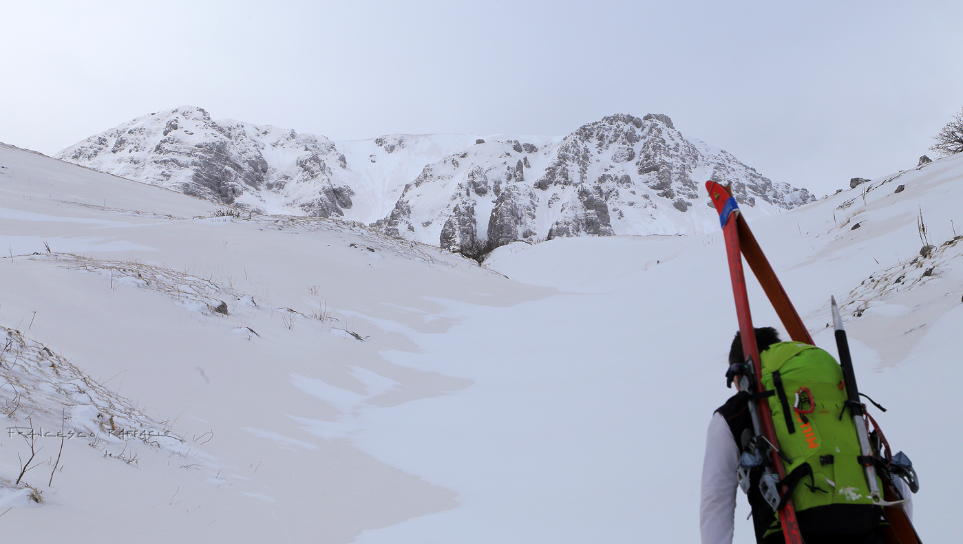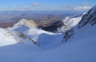 Discesa, anche scialpinistica, nel Canale Centrale (ENE) della Meta 35-40° (F- / BSA)