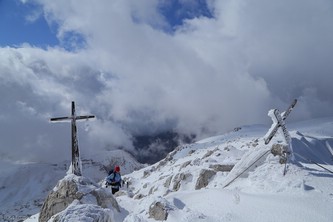 Cima Mt. Meta (2242m) con galaverna e la vecchia croce metallica piegata di recente