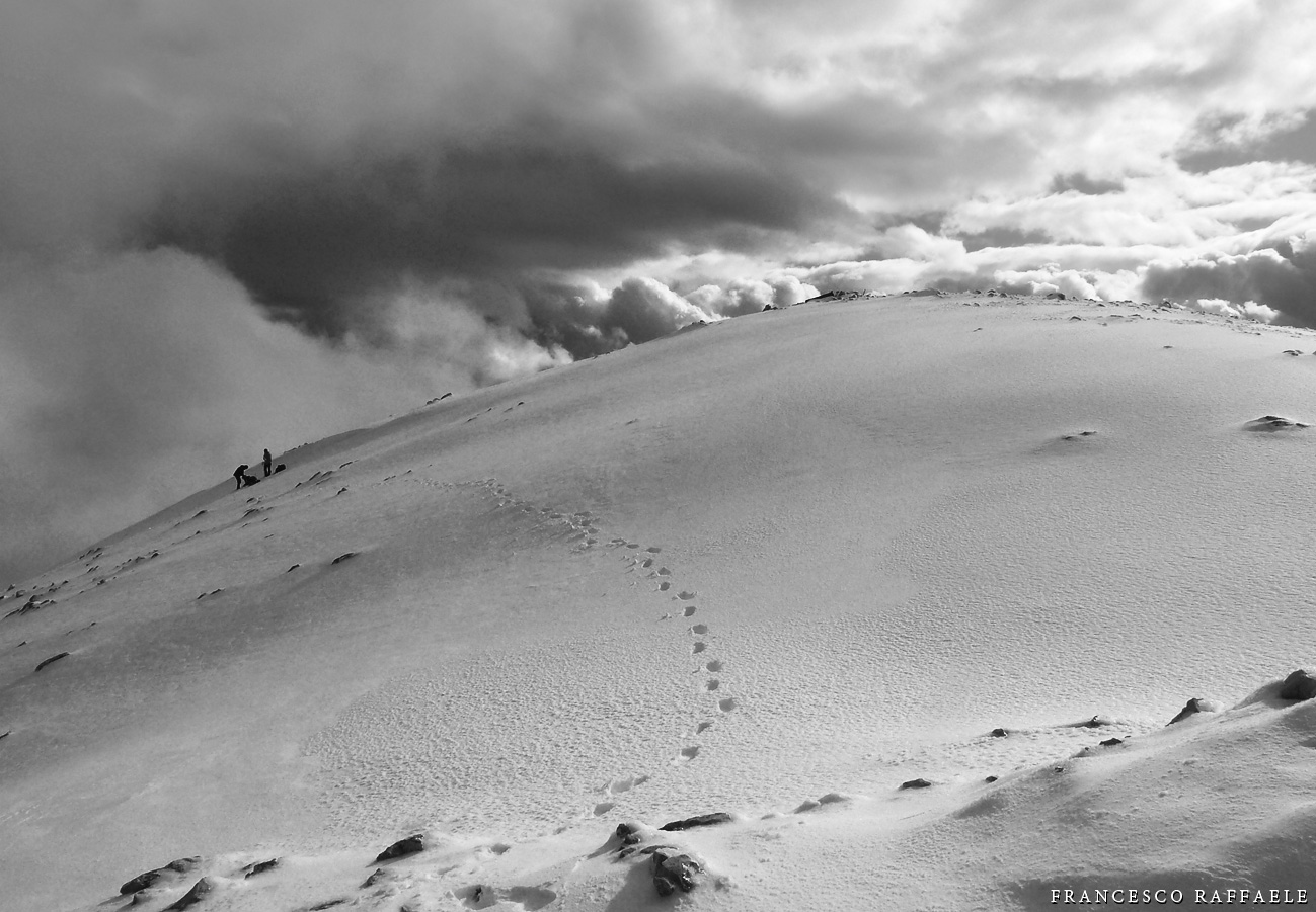Più su a des. sul crinale innevato il Rif. di Iorio |