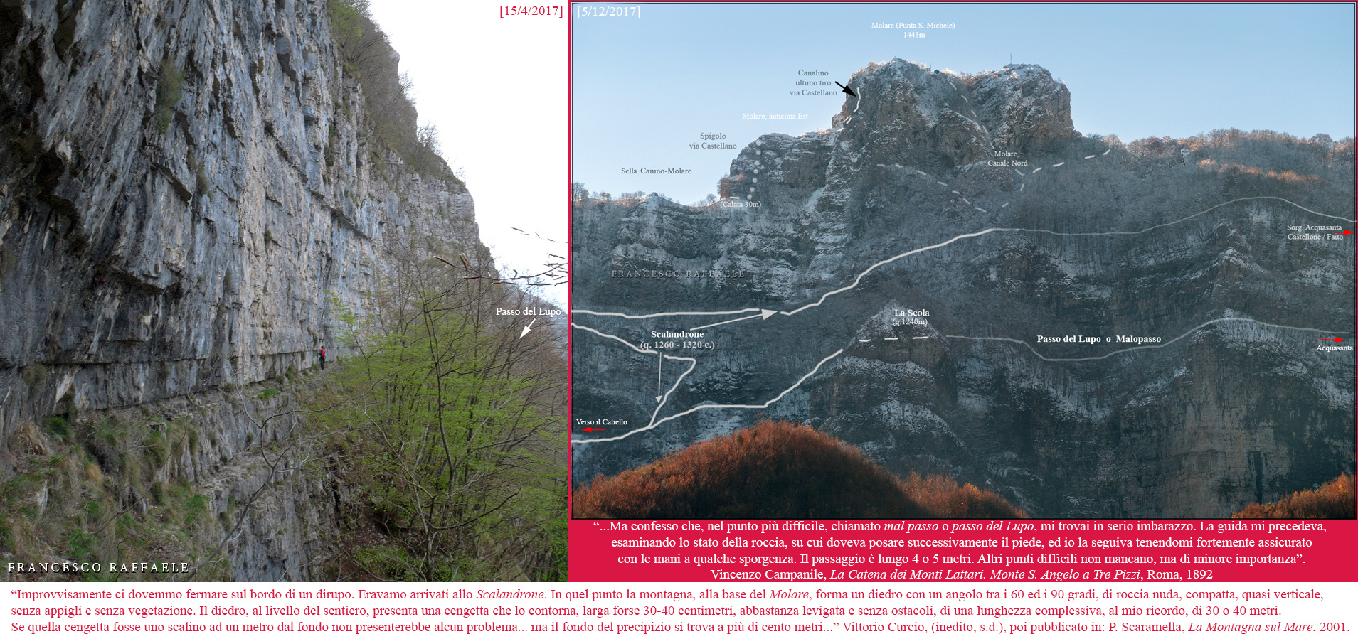 La Conocchia. In basso il torrione battezzato "il Dito di Dio" nella risalita al Canino e Catiello del 2016 (per la grande frana) con Elio Dattero (che l'ha scalato in libera fino in cima)