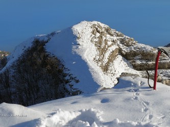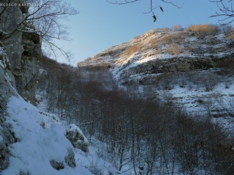 Tratto basso (ESE) del cosone SE del Canino: a ritorno ci vorrà prudenza con questa neve e le roccette scivolose...