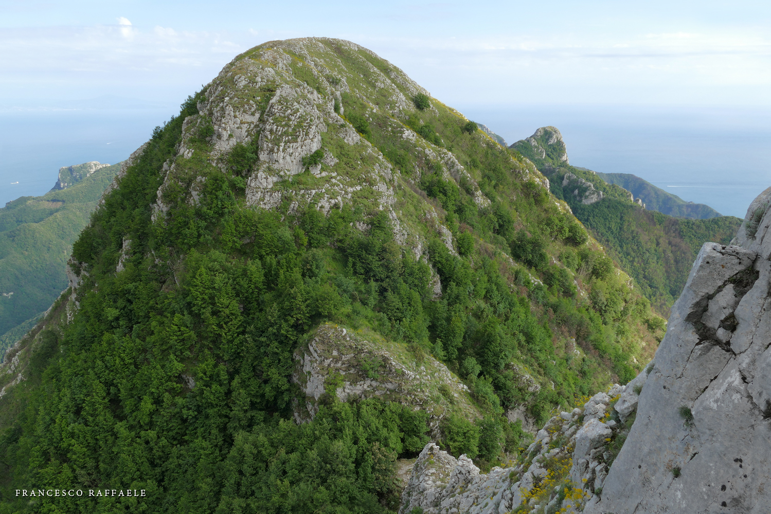Cima Nord (Telefono), Valle Metelliana (Cava de' Tirreni) e Golfo di Salerno. A des. Il Finestra (cima Sud)