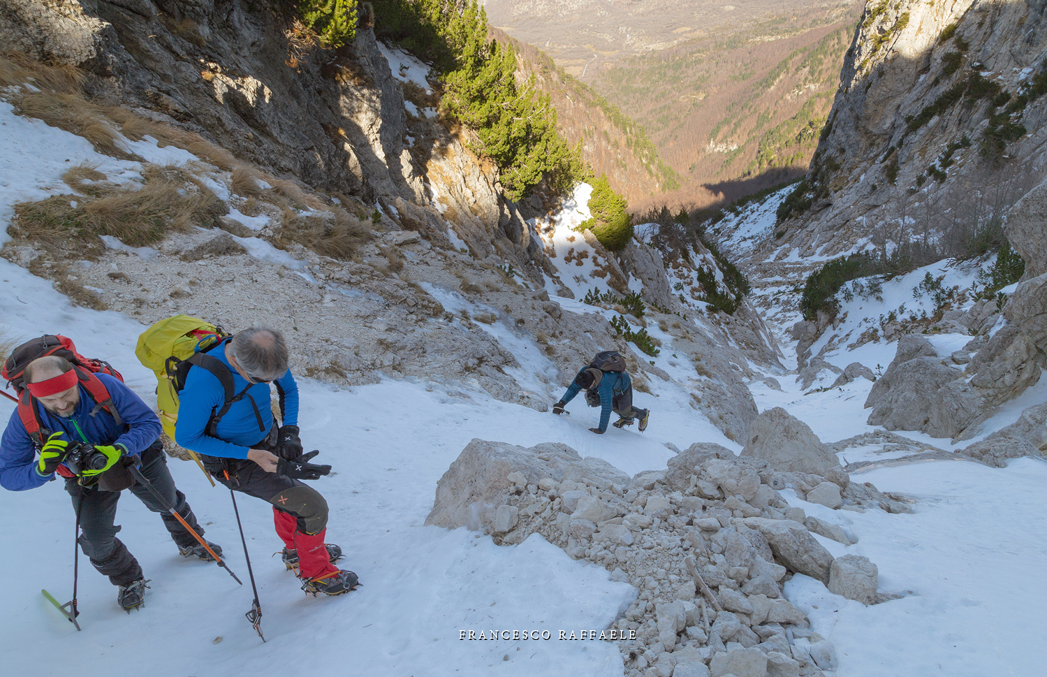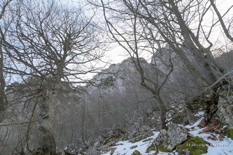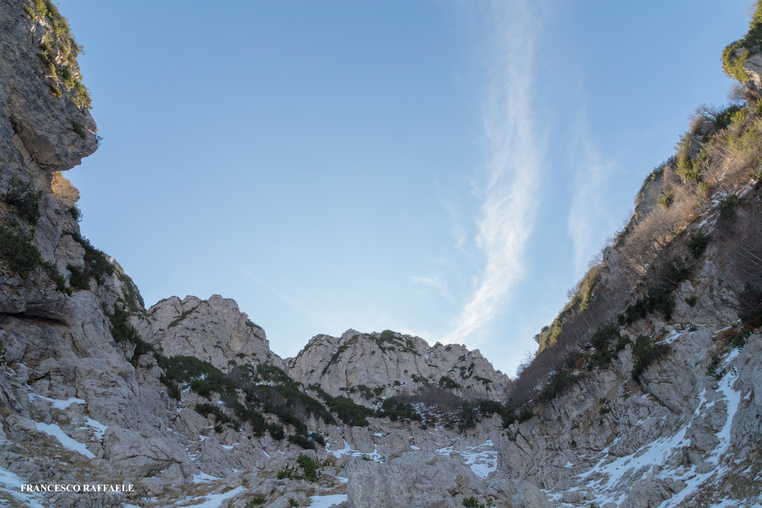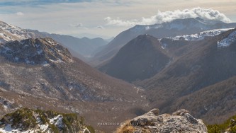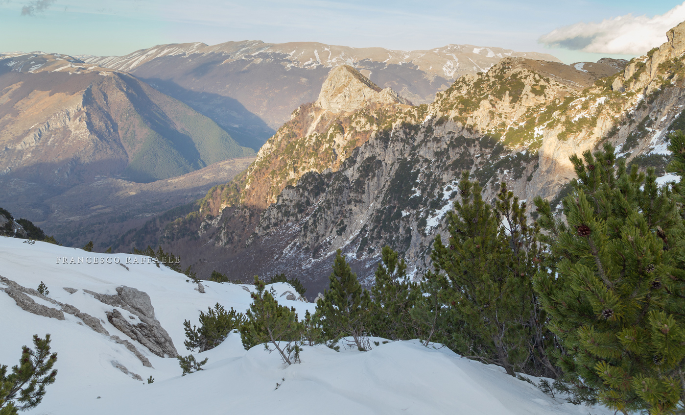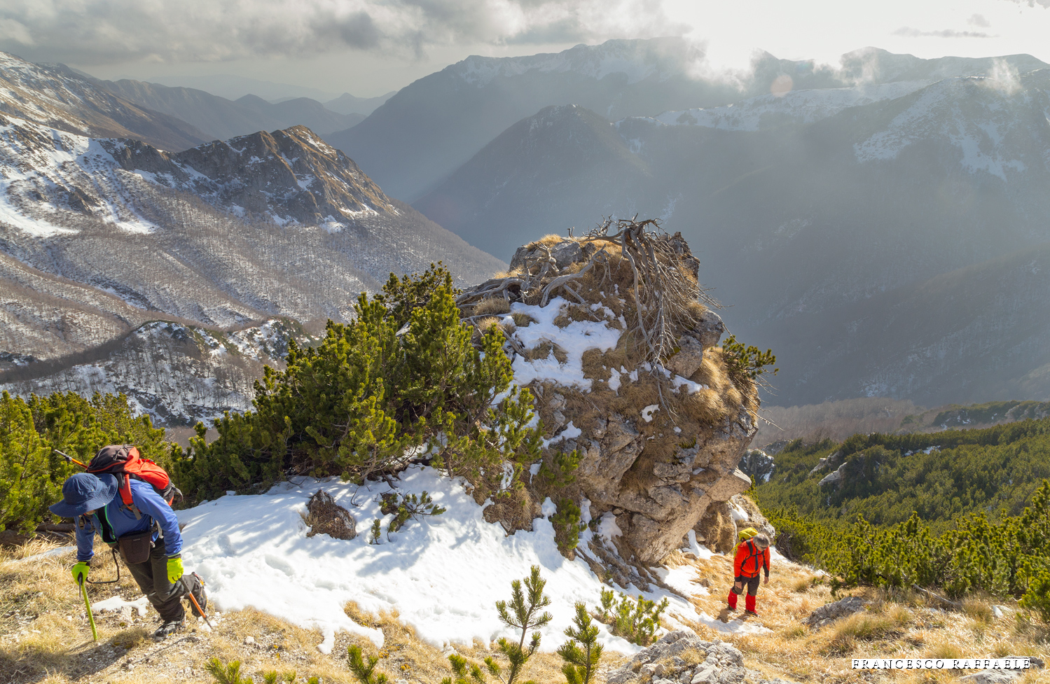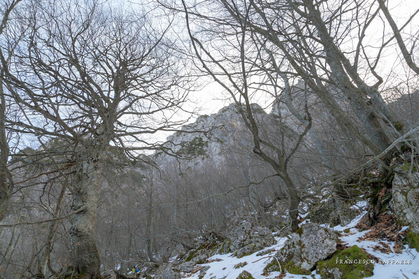 In un inverno purtroppo da record negativo, quanto a precipitazioni e temperature, decido di fare l'anello completo sul Balzo della Chiesa da N, con partenza da Civitella A. e avvicinamento dalla Camosciara. La propongo agli amici romani che accettano.