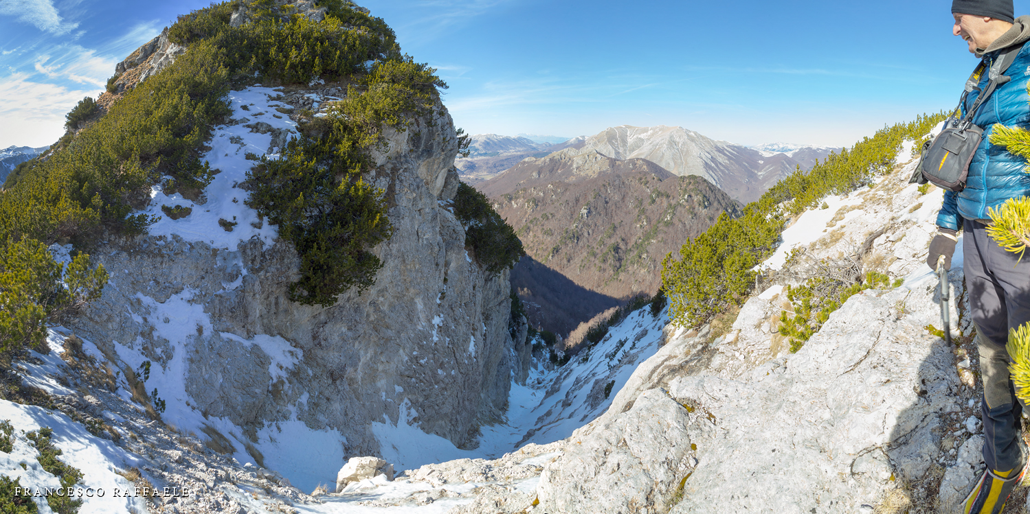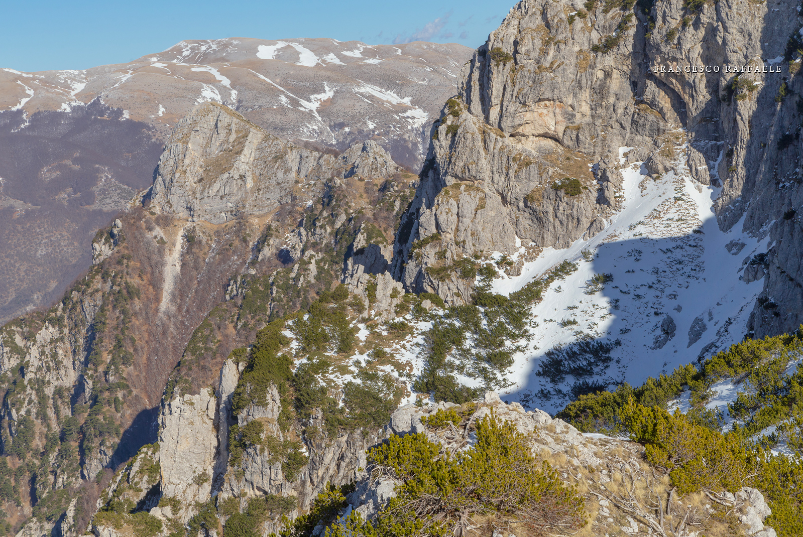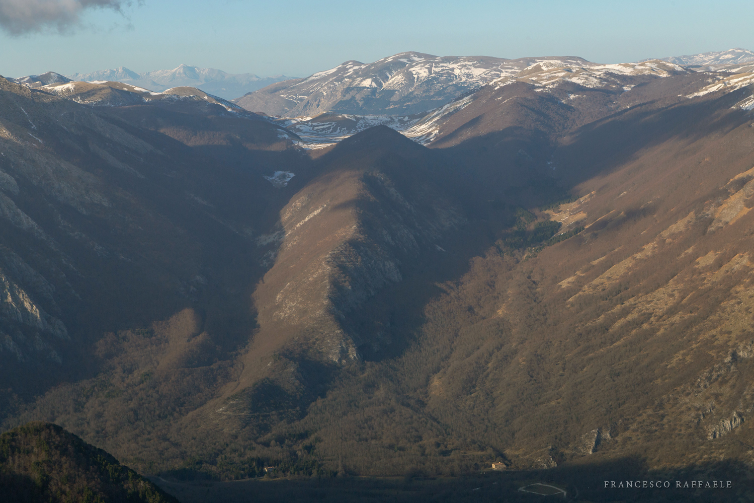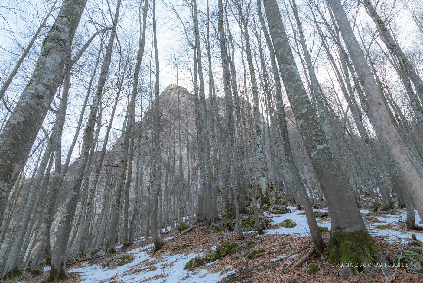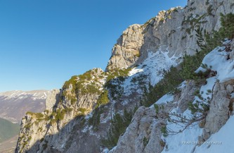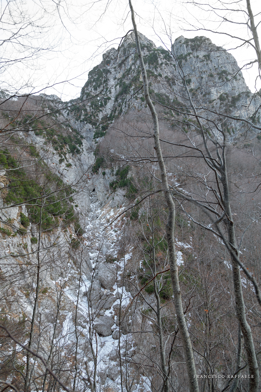 In un inverno purtroppo da record negativo, quanto a precipitazioni e temperature, decido di fare l'anello completo sul Balzo della Chiesa da N, con partenza da Civitella A. e avvicinamento dalla Camosciara. La propongo agli amici romani che accettano.