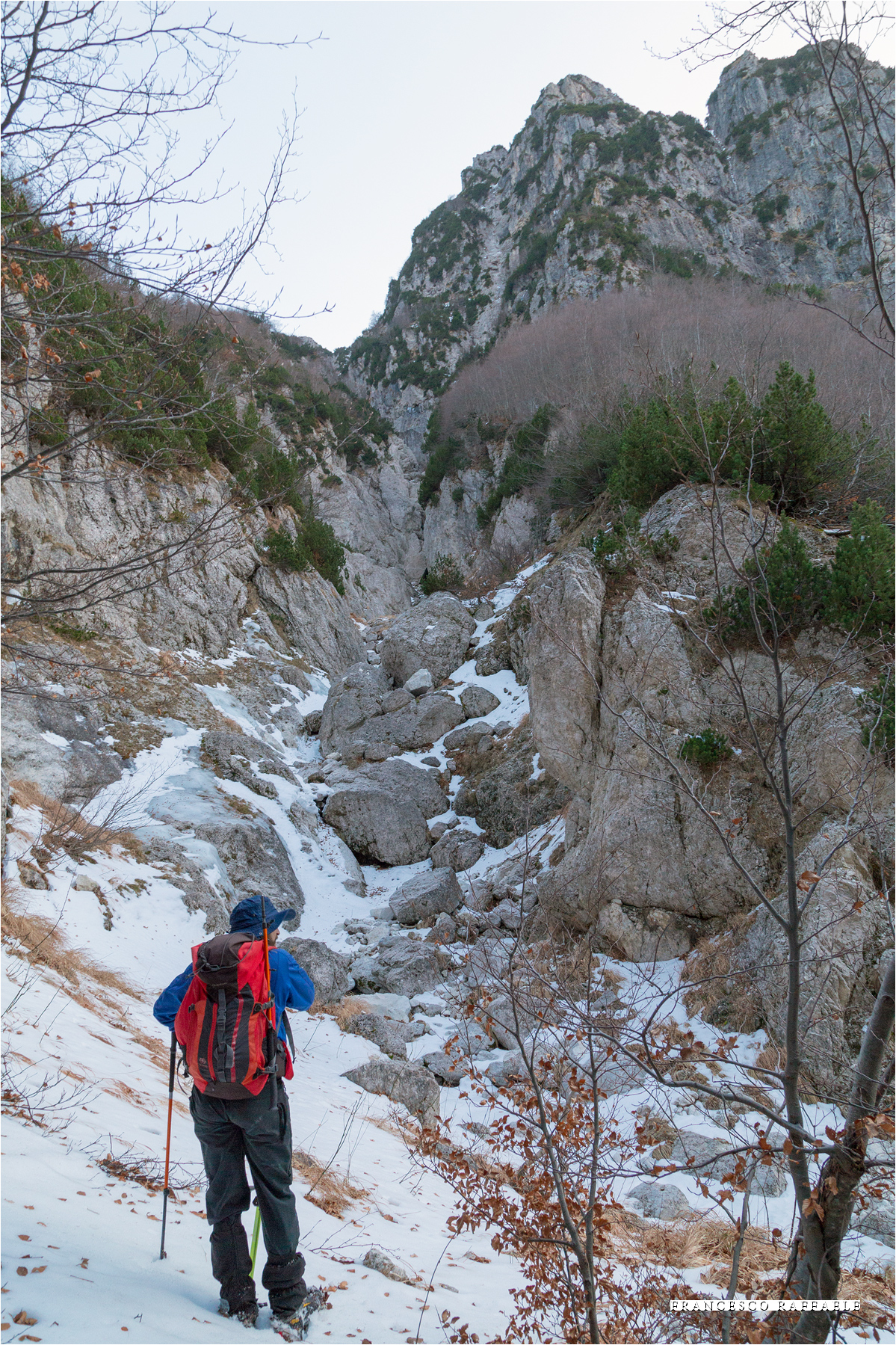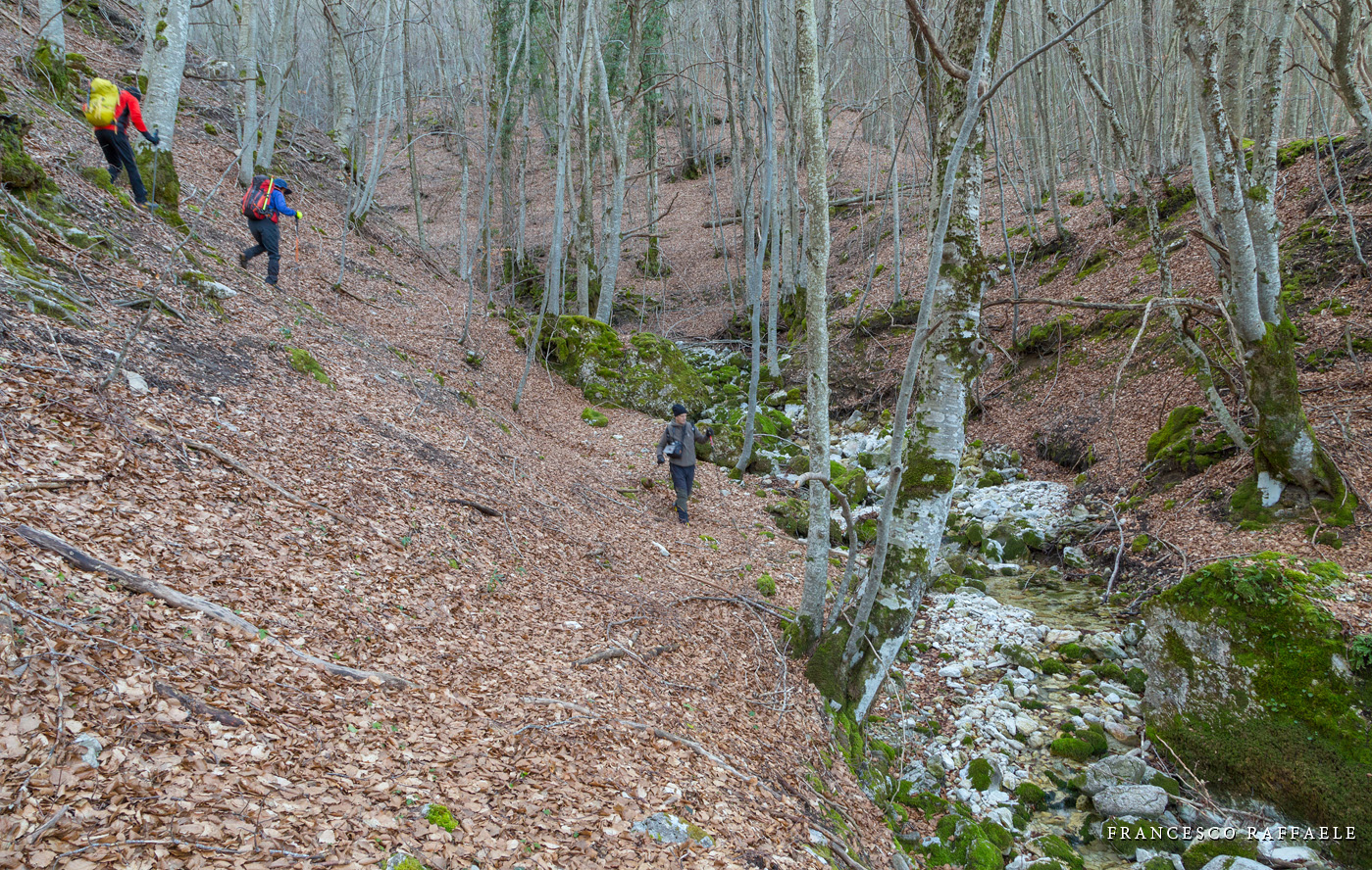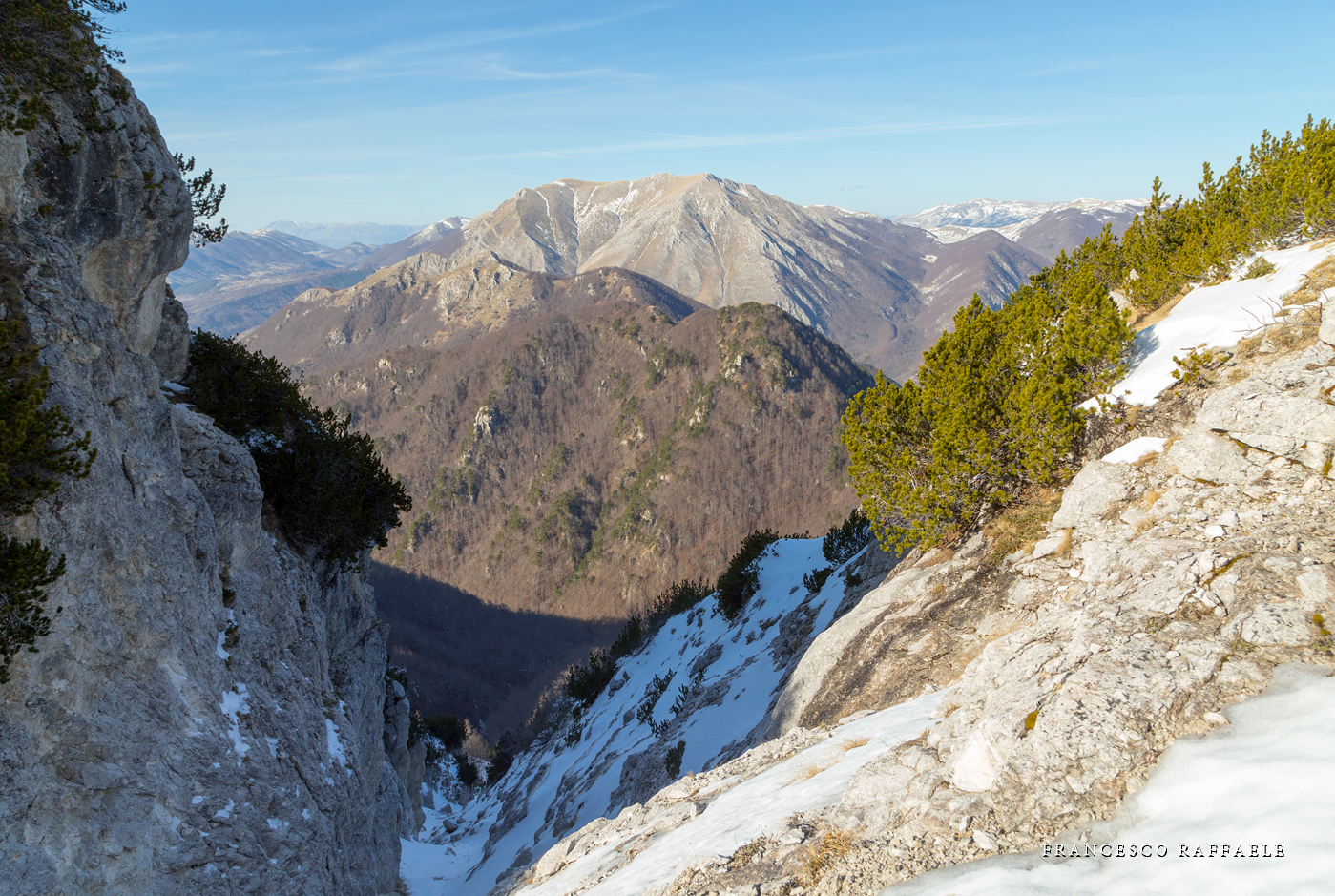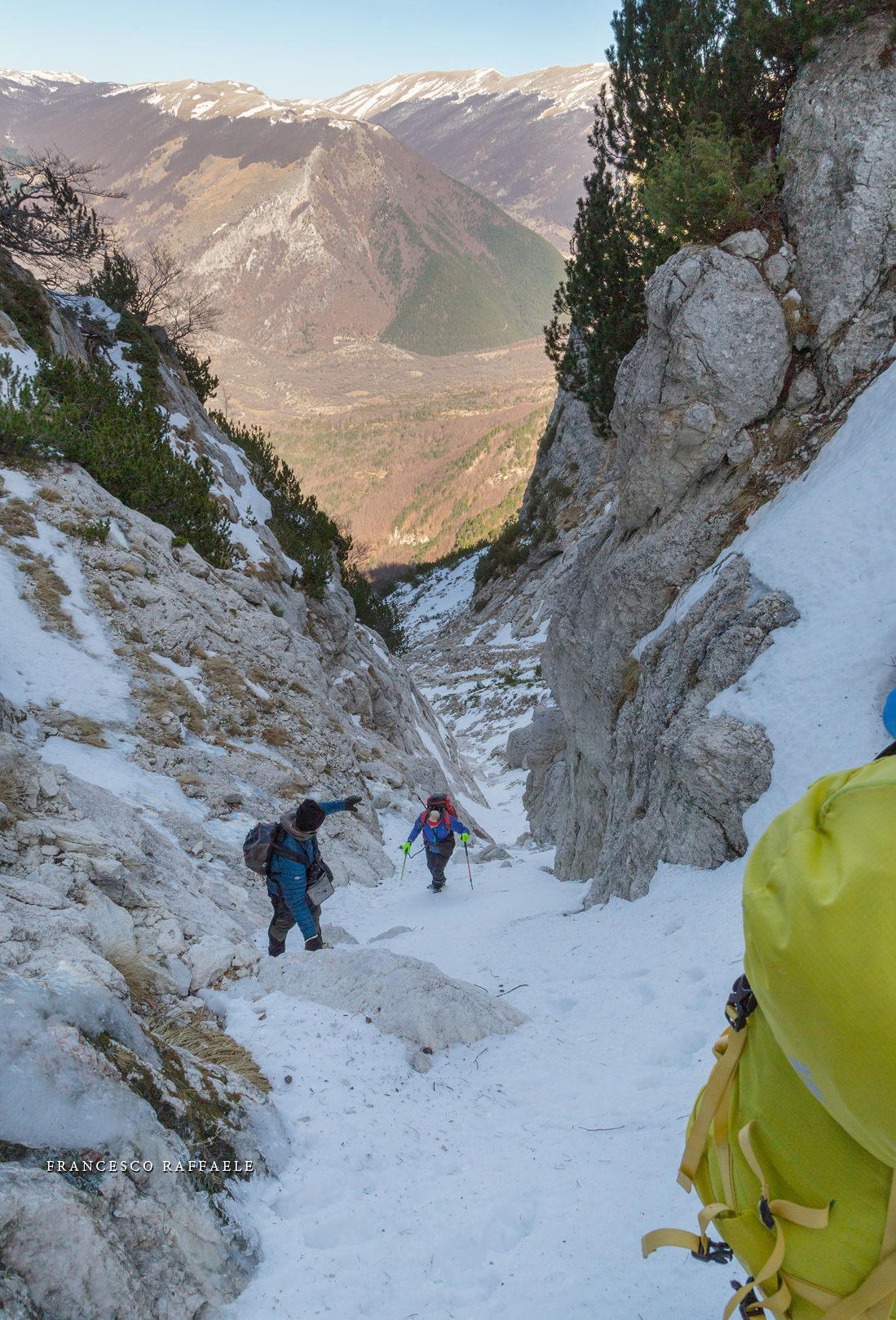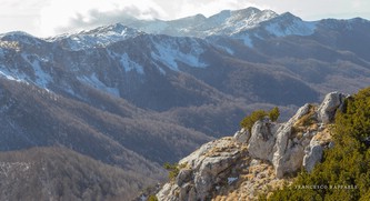In un inverno purtroppo da record negativo, quanto a precipitazioni e temperature, decido di fare l'anello completo sul Balzo della Chiesa da N, con partenza da Civitella A. e avvicinamento dalla Camosciara. La propongo agli amici romani che accettano.