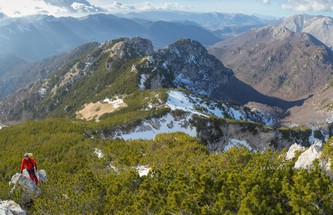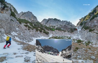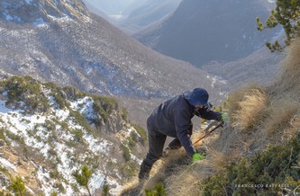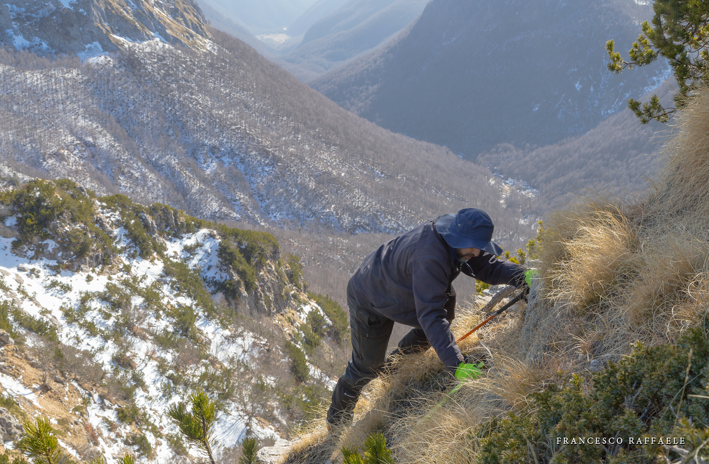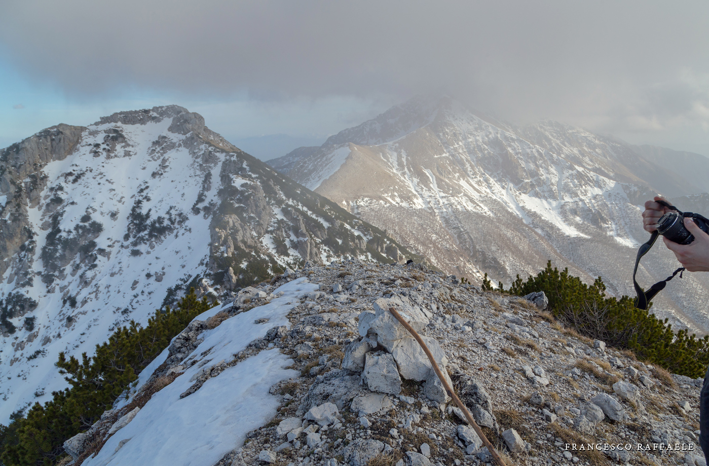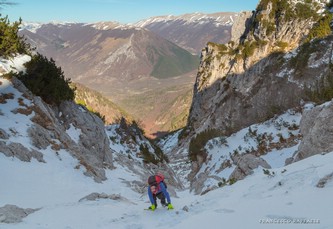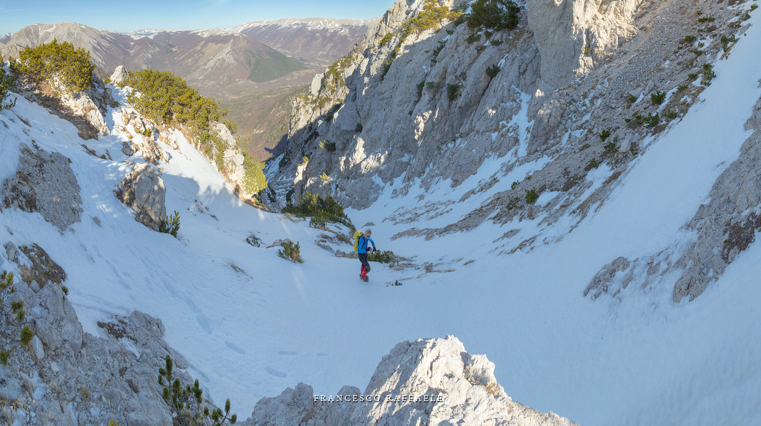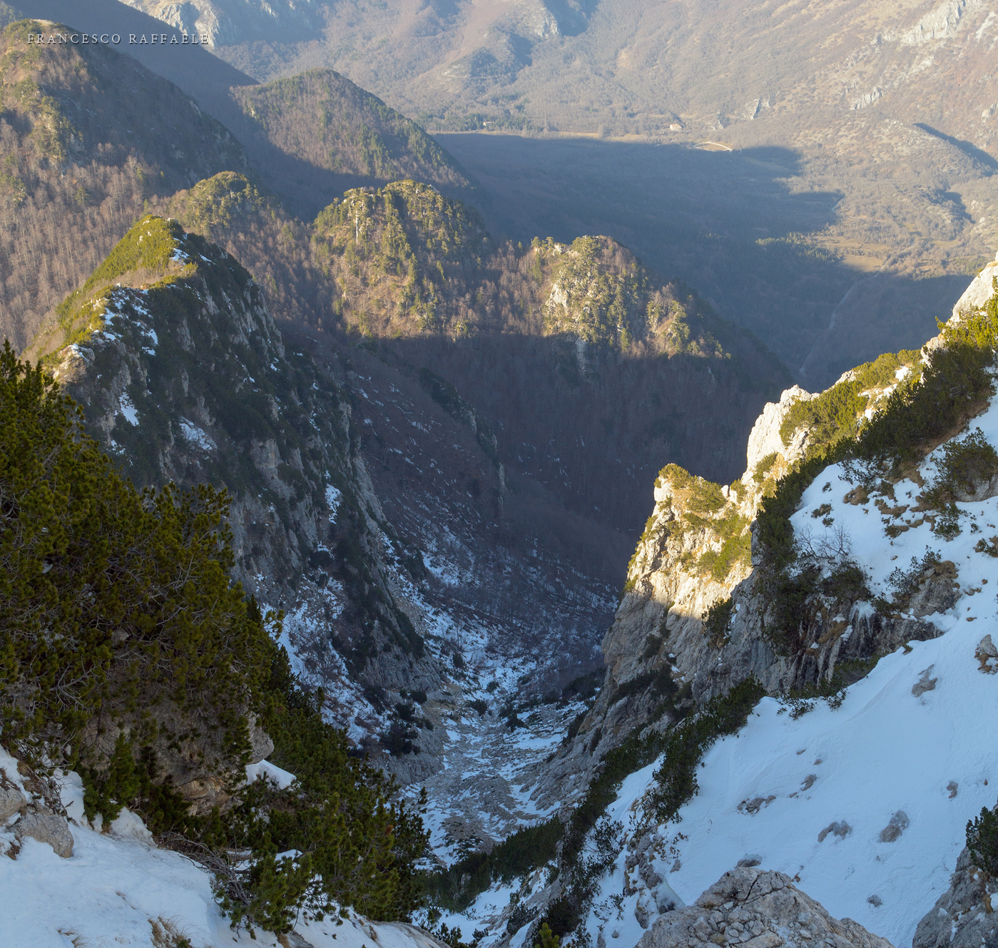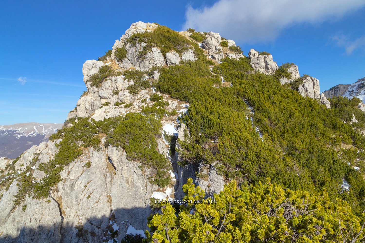 In un inverno purtroppo da record negativo, quanto a precipitazioni e temperature, decido di fare l'anello completo sul Balzo della Chiesa da N, con partenza da Civitella A. e avvicinamento dalla Camosciara. La propongo agli amici romani che accettano.
