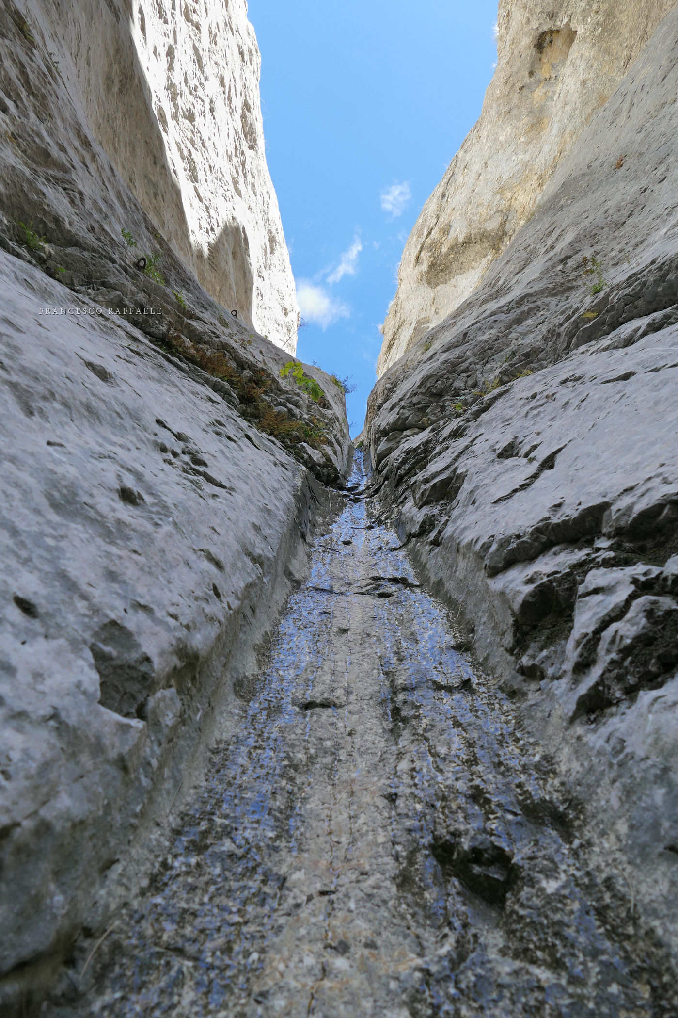 La Via del Canalino è valutata PD+ (max. diff. II) in condizioni invernali (C. Iurisci, 2012, p. 271): in estiva l'ambiente è meno severo ma i passaggi su roccia sono forse più insidiosi: PD+ (II+/III-). La salita, dalla partenza alla cima (+1350 m disliv.), è durata 4 h, il giro intero (15 Km, 1500 m disliv., poco più di 9 h). Gran sorpresa l'incontro con due Vipere dell'Orsini, oltre a tanti cervi e i "soliti" grifoni. (