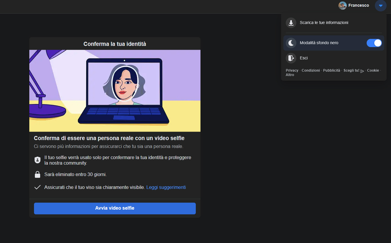 La richiesta di "conferma dell'identità" (screenshot qui in basso) mi è partita l'11 marzo (2026), mentre rispondevo agli auguri del mio compleanno del giorno precedente.