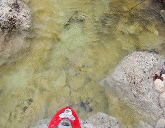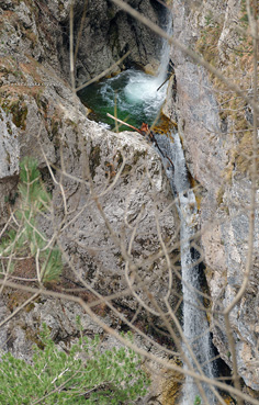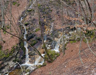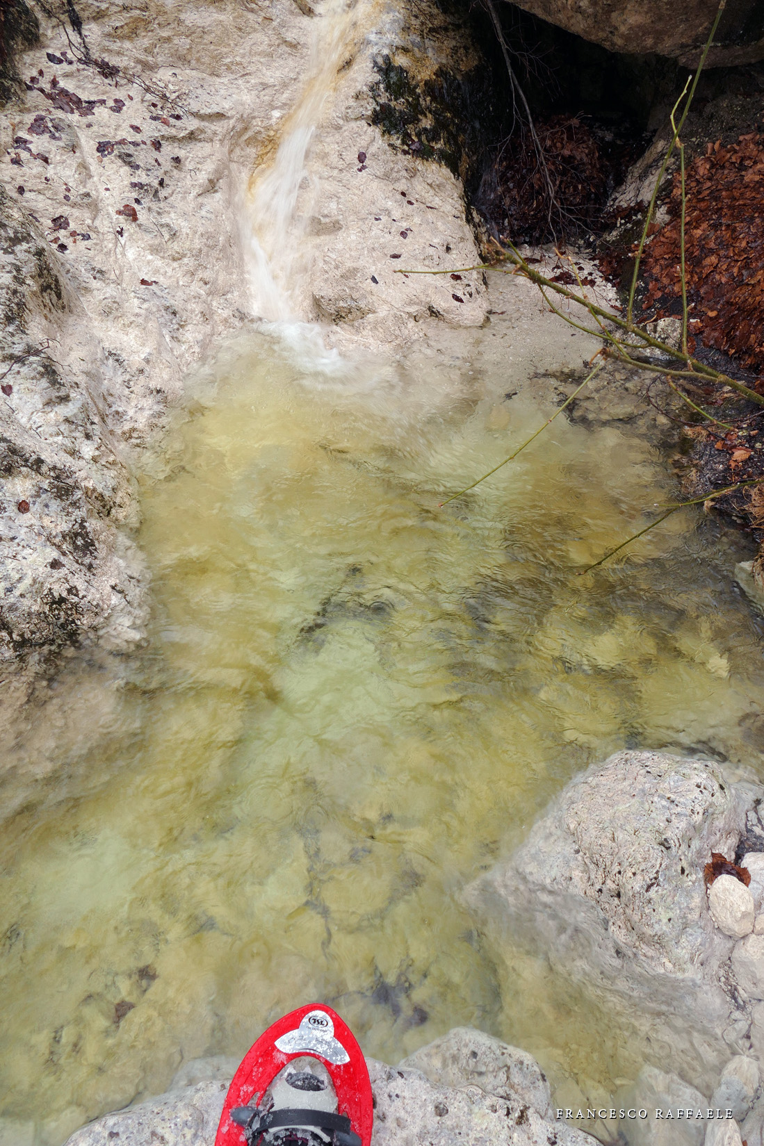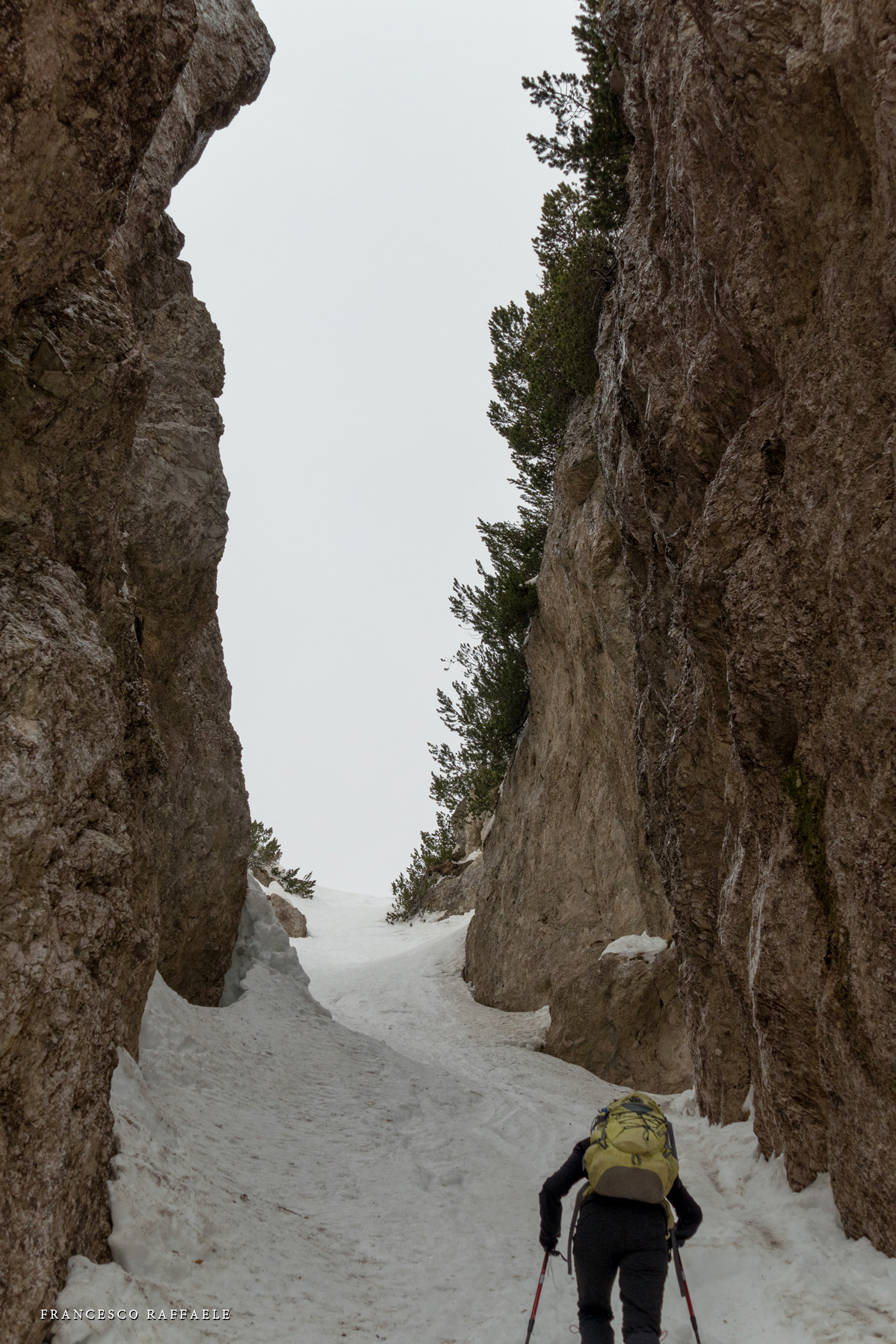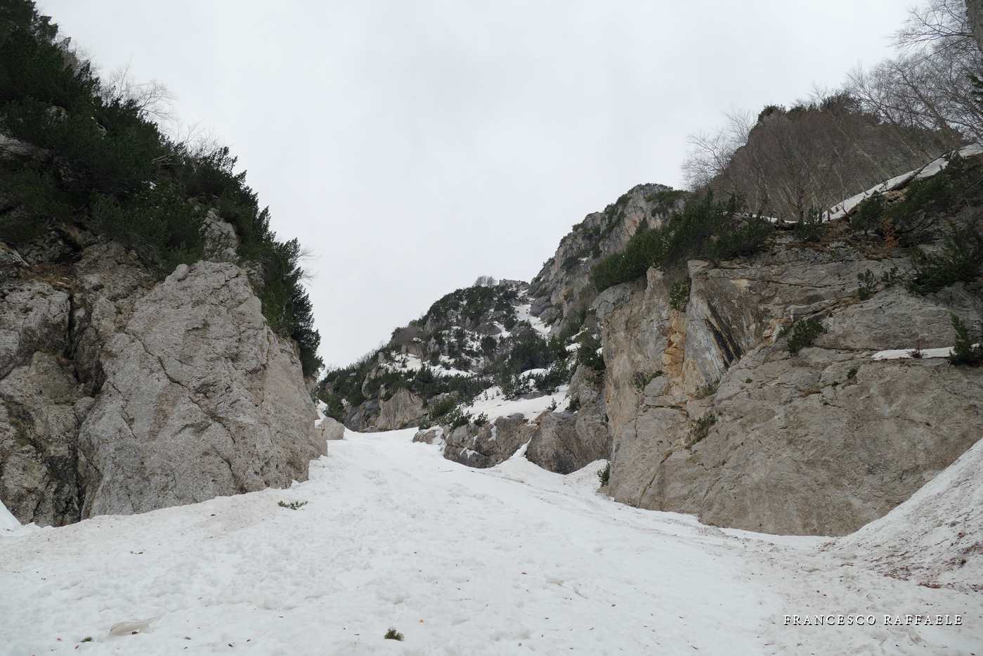 venuto da chiamarlo "La Cripta", visto che si trova proprio "sotto la Chiesa" ed è assai incassato: in questa occasione è stato possibile risalirlo facilmente (max c.45°) perché era strapieno di neve, altrimenti i salti sono più tecnici.