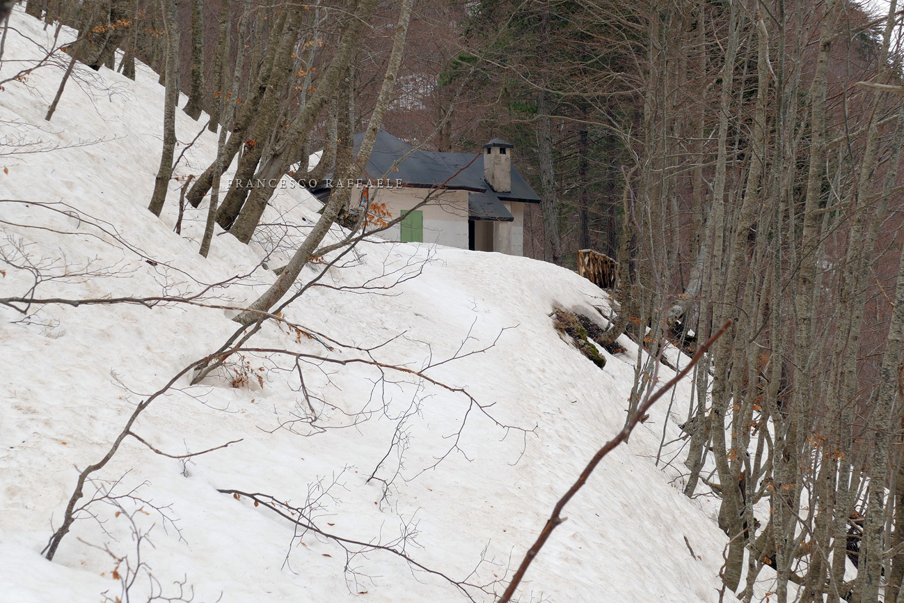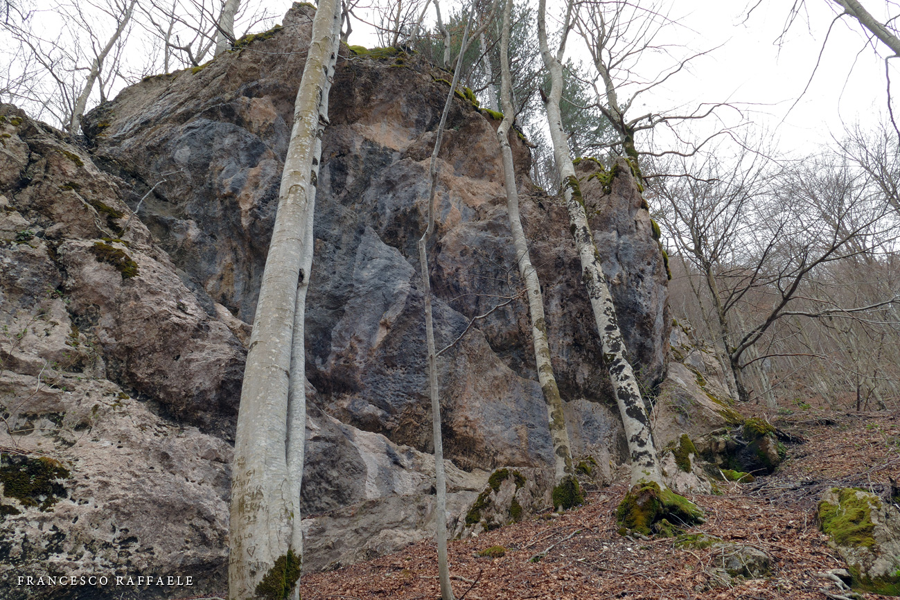 ** [Cf. D. Lunghini, L. Timpone, Ceramiche protostoriche sui pendii della Camosciara nel Parco Nazionale d'Abruzzo, in: Studi per l'Ecologia del Quaternario, n. 1, 1979, p. 171-173 (ringrazio D. Boccia per avermi mandato questo articolo): lo Speleo Club Roma, su invito dell'allora direttore del PNA, F. Tassi, effettuò sondaggi che portarono, oltre al ritrovamento di numerosi frammenti ceramici nel "Pianoro della Liscia", q.1340 c. sul sentiero per l'omonimo rifugio, anche alla raccolta di alcuni manufatti d'industria litica ritrovati in una spianata "coperta di faggi e pino nero, sotto al piccolo belvedere" che sta proprio in quello che qui dedomino "Vallone del Capraro" a q. 1675m circa. E' evidente che il Vallone, di non difficile attraversamento per chi sa come risalirlo, costituisse una via per svalicare nella Valle del Melfa (ma dalla "Forcella di M. Capraro" si può prooseguire anche per calare in V. di Rose o V. Jannanghera), un po' come altri tracciolini relativamente impervi (e forse usati solo dai cacciatori) consentivano di svalicare più a W, alla "Sella dei Tre Mortari" e alla "Sella di Valle Jancino", scomode ma più dirette alternative al sentiero / poi storica mulattiera "Val Fondillo - Passaggio dell'Orso - Valle Canneto "]. F.R. |