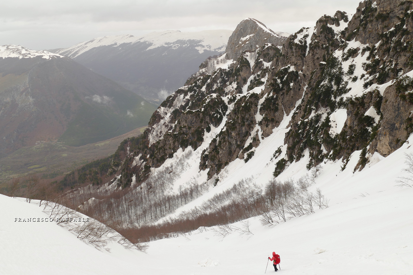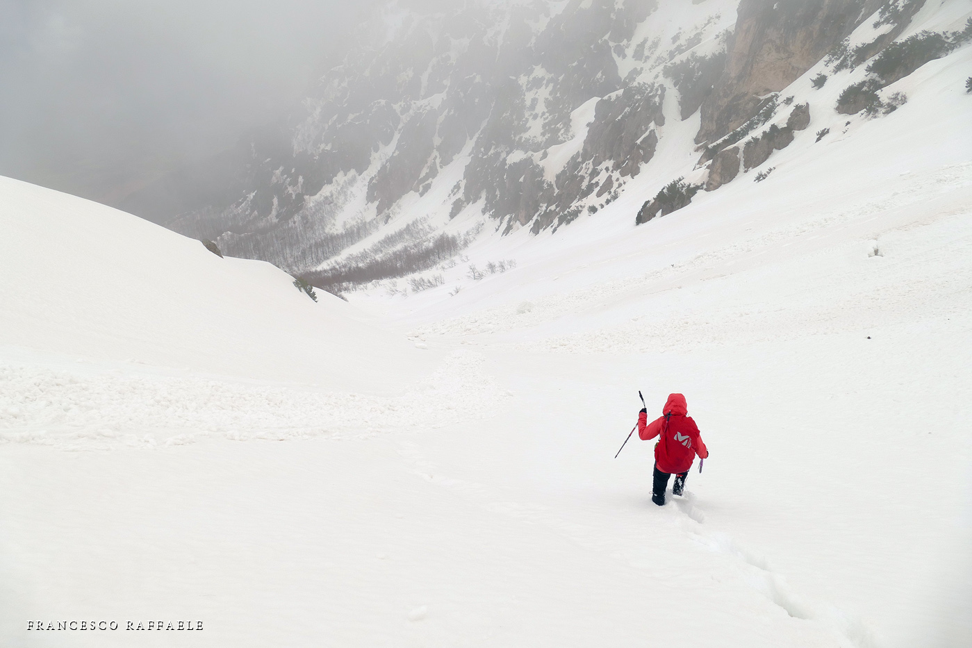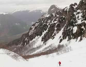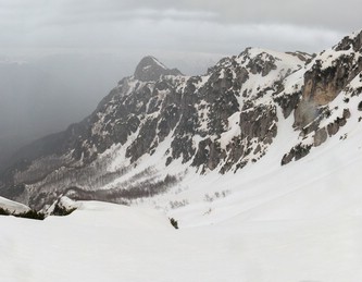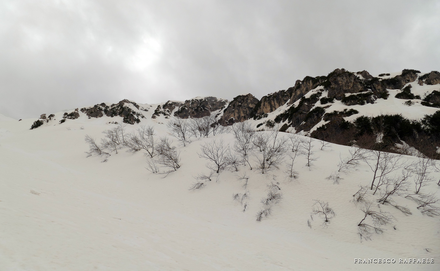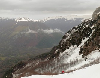 Non spetta a me stabilire quanto sia oggi lecito e necessario il divieto -più che dal punto di vista "Legale", intendo soprattutto da quello Naturalistico!-, fatto sta che "eticamente" si ha sempre un certo timore reverenziale nell'accedere in questi meravigliosi luoghi, perché, oltre alla loro asperità, ci si rende conto di star quasi profanando un "Tempio della Natura" (anche se è noto che un minimo di attività alpinistica e scialpinistica è qui sempre stato praticato). Evito di inserire dettagli e traccia dell'itinerario cosicché ognuno abbia la possibilità di cercarsi la via e sceglire "se rischiare". Da un lato credo che posti tanto unici andrebbero resi fruibili agli escursionisti, dall'altro non si può non ammettere che l'ambiente trae sempre un grande vantaggio quando l'accesso dell'uomo è proibito o ridotto al minimo: sono numerosi i casi (vedi il recente incommentabile "sfregio" alla Madonnina del Blockhaus, in Majella) in cui ho avuto modo di appurare che Escursionismo e Alpinismo non sempre si traducono in rispetto per la Natura, e nell'era in cui tutto sta diventando "di massa", non finisco mai di chiedermi se non sia effettivamente un bene che qui si rischi anche una "sonora" multa oltra alla pellaccia... Soprattutto se poi si considera l'effetto "reazione a catena" che si sviluppa, specialmente sui social networks, allorché qualsiasi foto, informazione o traccia gps caricata, rischia teoricamente di dare il "LA" a tante "ripetizioni". |