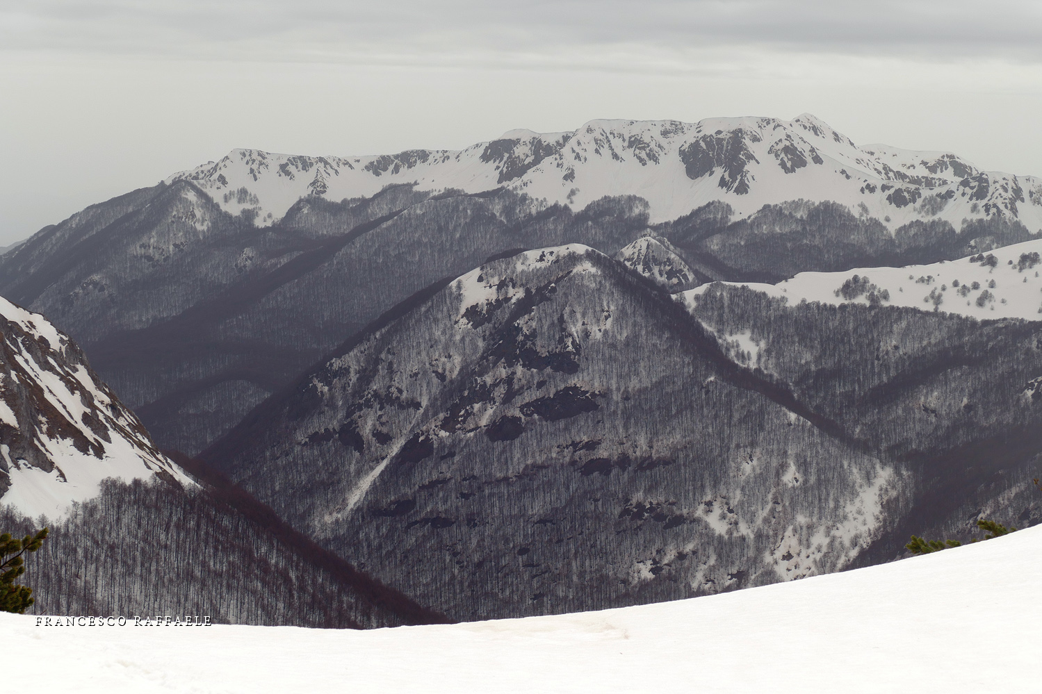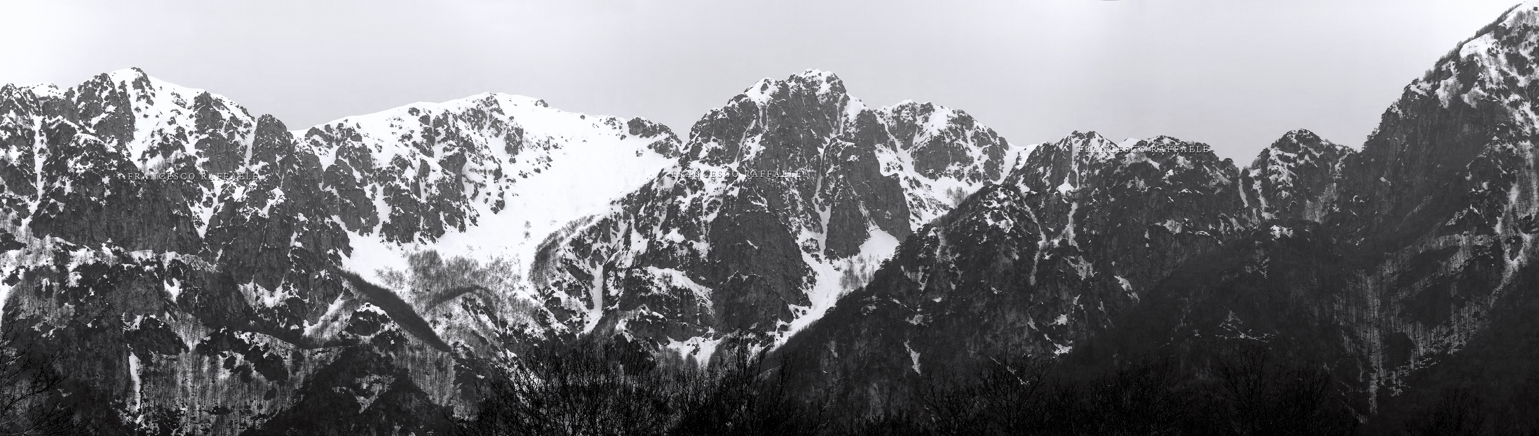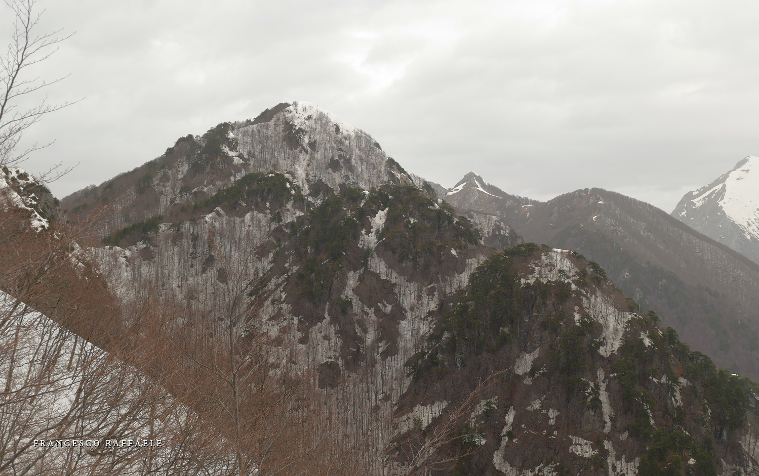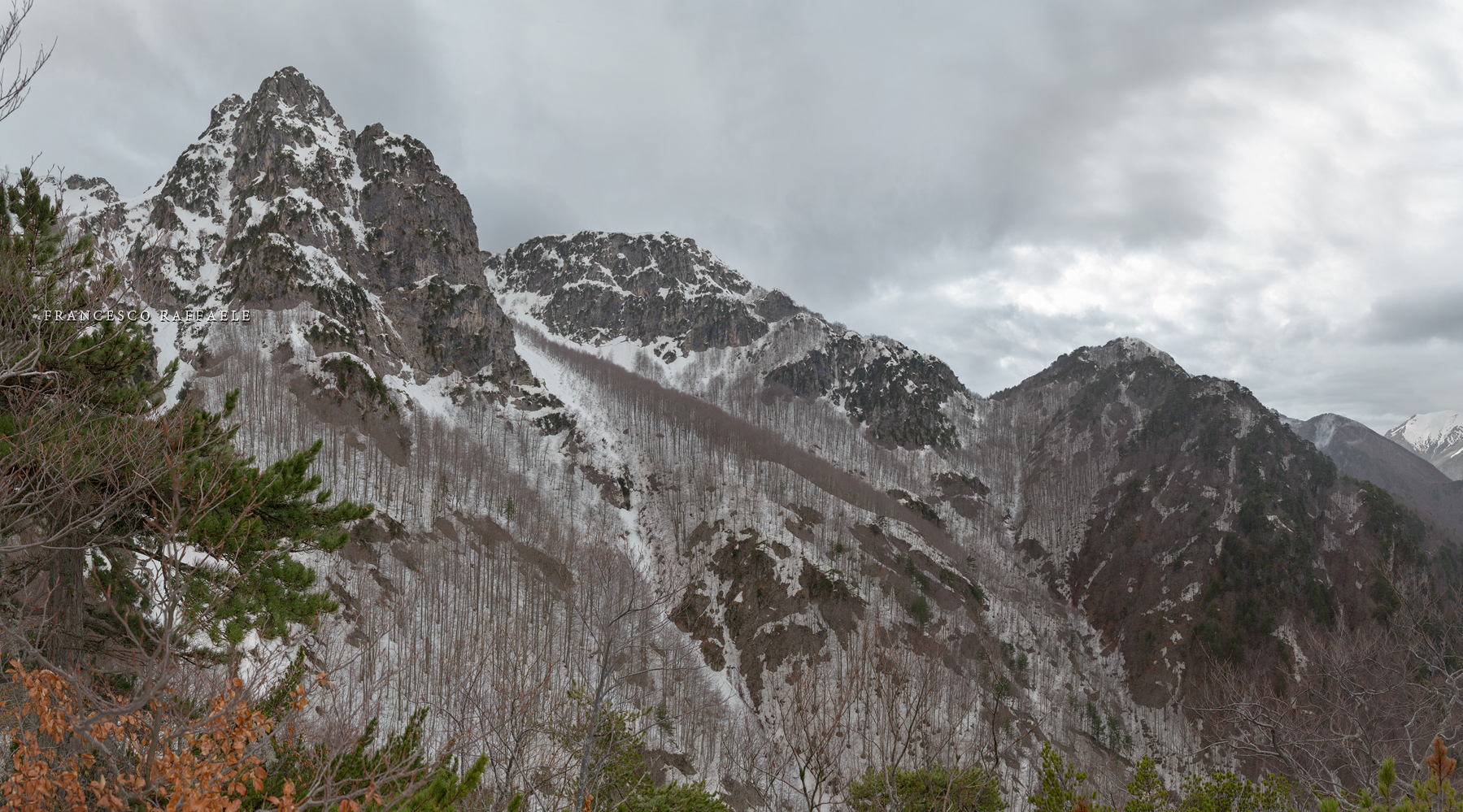 Presso la firma in basso (precisamente sopra la "E" finale") s'intravede il rifugio Belvedere della Liscia (1437m), che si vede meglio nella seconda foto da sinistra qui in basso. A monte del rifugio è Riserva Integrale del PNALM.