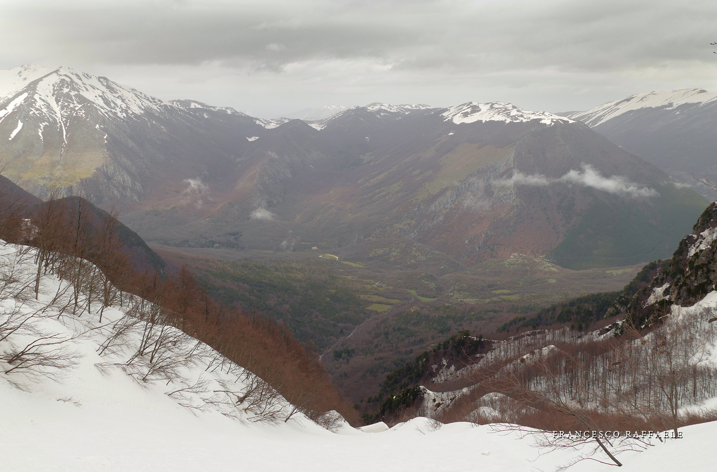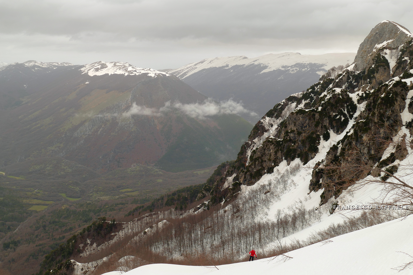 Intanto a Nord si copre tutto e ne approfittiamo per mangiare qualcosa. Dopo un'oretta comincia a riaprirsi e scendiamo nel "Vallone del Capraro". |