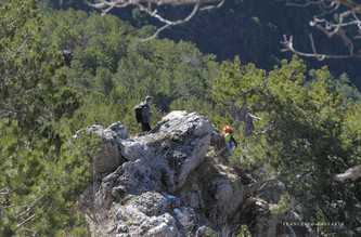 Dalla variante D'Aquila sbuchiamo nella Gola del Turbine: noi scendiamo verso l'anfiteatro per andare a risalire la Direttissima di sopra, mentre Ercole risale quella inferiore /Turbine per poi raggiungerci in cima ! |